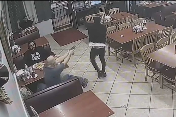 Witnesses told officers the suspect entered the restaurant and pointed a pistol at patrons as he demanded their money. As the suspect collected money from patrons, one of the patrons, described as a white or Hispanic male, produced a gun of his own and shot the suspect multiple times. The shooter collected the stolen money from the suspect and returned the money to other patrons. He and other patrons (victims) then fled the scene.