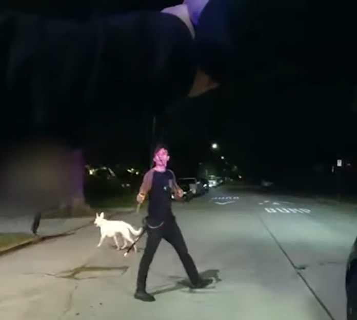 Los Angeles, California — On October 18, 2022, around 11:20 p.m., Wilshire Patrol officers responded to the 1200 block of Victoria Ave for a radio call of an Assault with a Deadly Weapon in progress, the suspect is armed with a sword at the location. Upon officer’s arrival they observed 23-year-old Eric Herrera walking in the middle of the street holding a sword. Officers attempted to de-escalate the situation and gave Herrera verbal commands to put the weapon down. Herrera refused to cooperate with the officer’s commands as he approached officers with sword in hand.