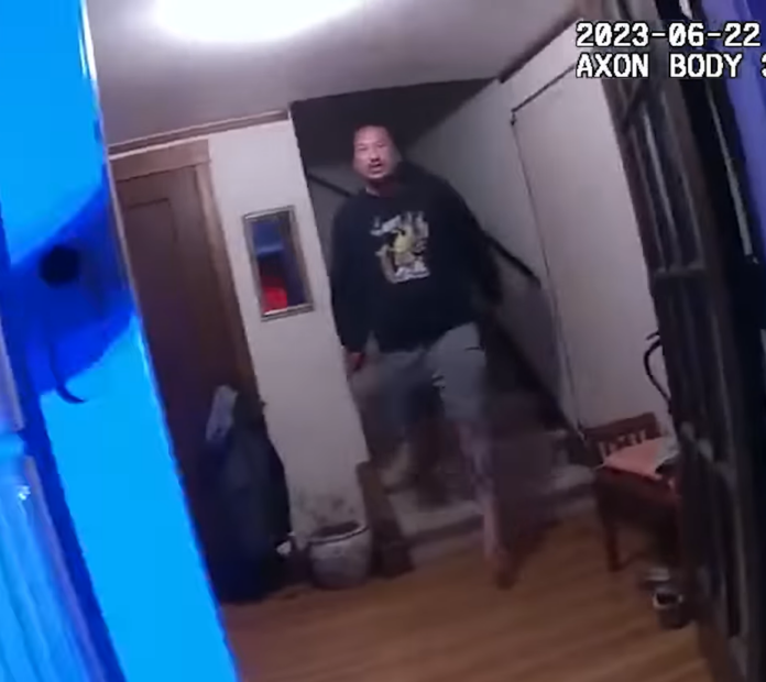 San Francisco, California (SFPD) — On Thursday, June 22, 2023, at approximately 2:39 a.m., San Francisco police officers from Richmond Station were dispatched to a residence on the 700 block of 31st Avenue for a report of an aggravated assault in progress. Before officers’ arrival, Roland Child, 84, had called police to report an aggravated assault. Roland said that the suspect, his 37-year-old son Marc Child, had killed his 76-year-old mother, Barbara Lai Child, and his dog. An officer arrived on scene and made contact with an 84-year-old father in the doorway of the home. Officer Eduardo Villanueva goes up the stairs and encounters Marc Child, who was armed with a knife, according to authorities.