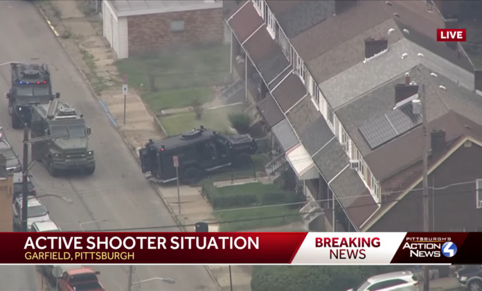 Pittsburgh police responded to an active shooting situation in which “hundreds of rounds” were reportedly fired near Garfield on Wednesday. The person in the home opened fire on police as they attempted to serve an eviction notice.