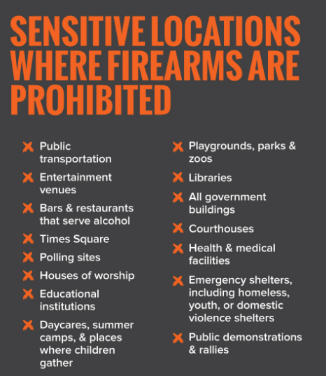 New York City Mayor Eric Adams said, “The U.S. Supreme Court’s Bruen decision was the shot heard round the world that took dead aim at the safety of all New Yorkers. New York City will defend itself against this decision, and, beginning tomorrow, new eligibility requirements for concealed carry permit applicants and restrictions on the carrying of concealed weapons in ‘sensitive locations,’ like Times Square, take effect. We will be posting signage at every entrance into Times Square informing those traveling through that the area is a gun-free zone and that licensed gun carriers and others may not enter with a gun unless otherwise specially authorized by law. As mayor of New York City and a former police officer, my top priority will always be the safety of all 8.8 million people who call this city home, so while the Supreme Court decision may have opened an additional river feeding the sea of gun violence, we are doing everything we can to dam it and keep New York the safest big city in America.”