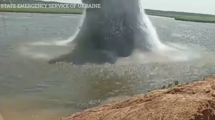 Video released on Thursday (July 27) by the State Emergency Services of Ukraine is said to show the moment divers detonated an underwater bomb in the Kharkiv region. Reuters was not able to independently verify the location or the date the video was recorded.