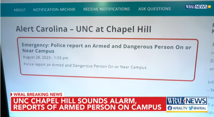 Authorities at the University of North Carolina at Chapel Hill were responding to a situation involving an individual who is considered “armed and dangerous” and is either on or in the vicinity of the campus. There were also reports of shots fired inside a building.