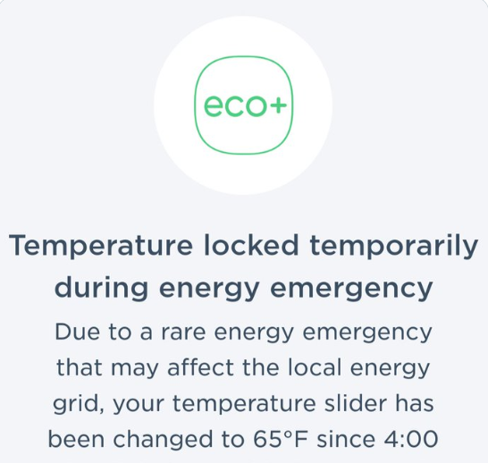 I received this message on my Ecobee thermostat earlier this week. I didn’t get it from Xcel. 🤔 pic.twitter.com/znHJ2ubTSJ