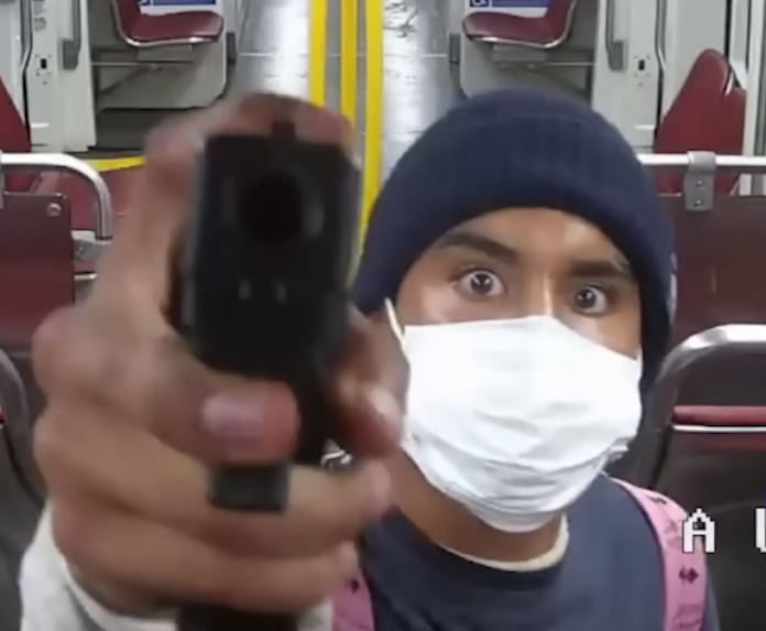 San Diego, California (SPD) — On Sunday June 04, 2023, at approximately 8:56 p.m., the San Diego Police Department received a radio call of a disturbance involving a male with what was believed to be a firearm on the trolley traveling south towards the San Ysidro Trolley Station. Multiple witnesses saw the suspect with the firearm in his hand and acting erratically. As the trolley arrived at the San Ysidro Trolley Station, passengers began evacuating the trolley car. Two officers arrived and gave the suspect several verbal commands to drop what was believed to be a firearm he was holding in his hand; however, the suspect ignored their commands.