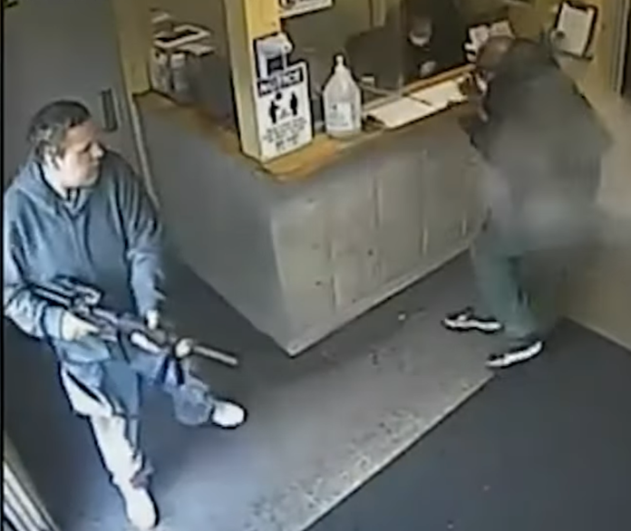 Terrifying moments caught on camera inside a medical clinic in Buffalo, New York. A man with an assault rifle storms in and the clinic’s security guard springs into action, pouncing on the gunman.