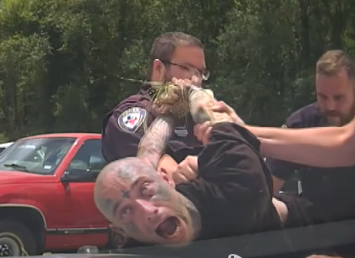 Law enforcement can be seen throwing down spike strips, only for Tunnel to dodge them with a quick lurch to the far left lane. Eventually, Tunnel lost control of the pickup truck and hit both the left and right side barriers in a two lane section of the highway, ending the chase. Officers with guns drawn and a K-9 unit nearby demanded that Tunnel surrender. Officers then pulled Tunnel out of the truck and put him on the hood of the police cruiser as they placed him in handcuffs. Tunnel was taken to a local hospital to be checked out and then transported to the Orange County Jail. He’s facing charges of unauthorized use of a motor vehicle in Jefferson County and evading arrest in a motor vehicle with a previous conviction in Orange County. His bond is on hold due to his other charges.