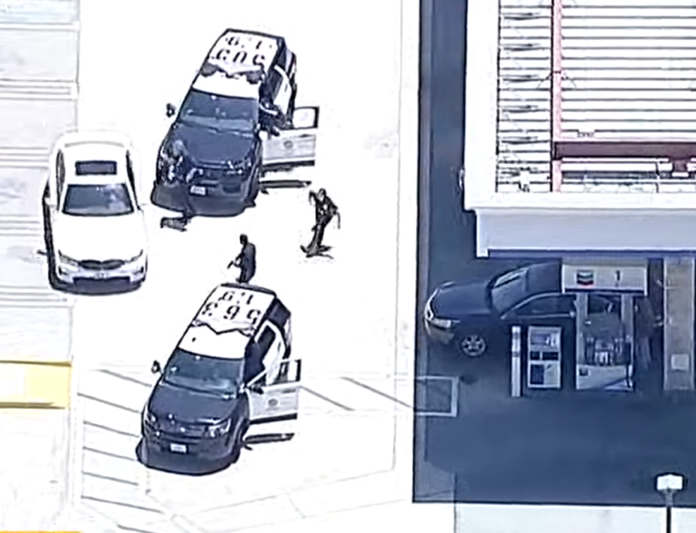 LOS ANGELES (KABC) — A man fled from officers in a minivan Wednesday through the San Fernando Valley and then carjacked two separate vehicles in his desperate attempt to escape. The chase lasted more than an hour as the suspect fled on freeways at speeds over 100 mph, then weaved through traffic on surface streets and carjacked vehicles at two separate gas stations in the west valley. It eventually ended in the suspect’s surrender.