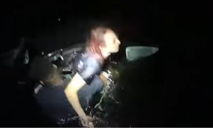 Cape Coral, FL – Tuesday morning around 3:00 am, a female drove her vehicle into a canal. Without hesitation, Officer Kwesi Johnson jumped into the canal, busted out the driver’s side window, and rescued the female from the sinking vehicle.